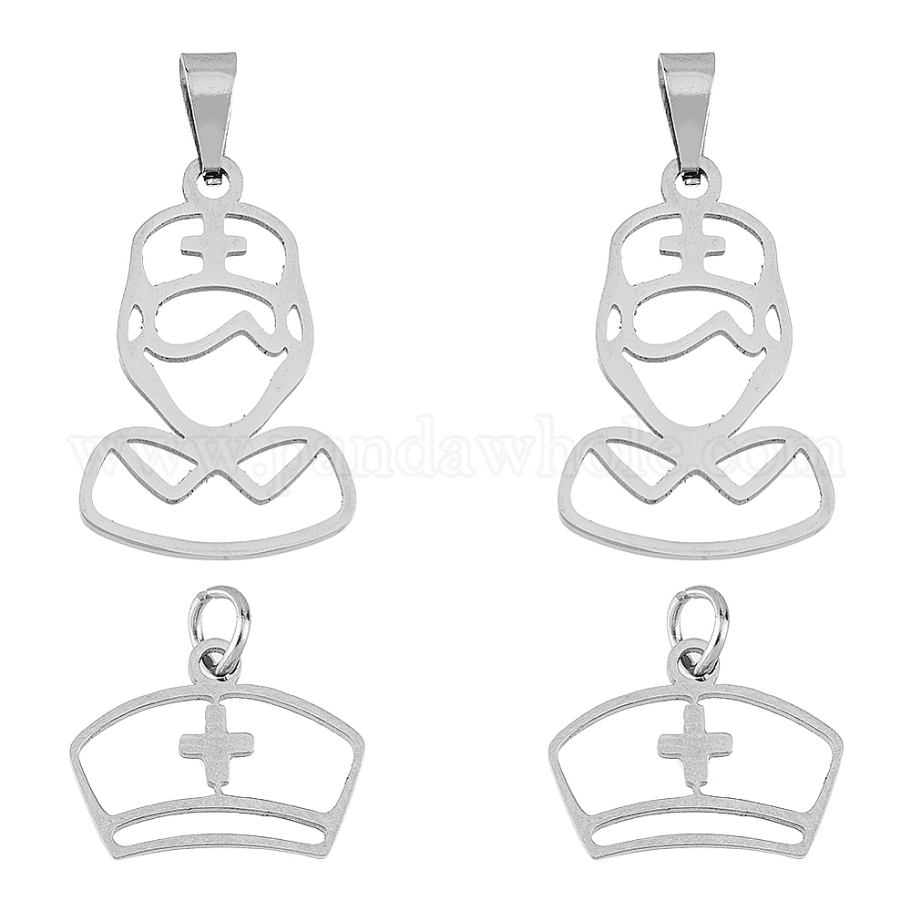 • Нержавеющая Сталь Цвет 20 шт 2 стиль 201 подвески из нержавеющей стали, подвески парамедиков, шапочка медсестры и медсестра, цвет нержавеющей стали, 12.5~25.5x16~17x1 мм, отверстие : 3~5 мм, 10 шт / стиль