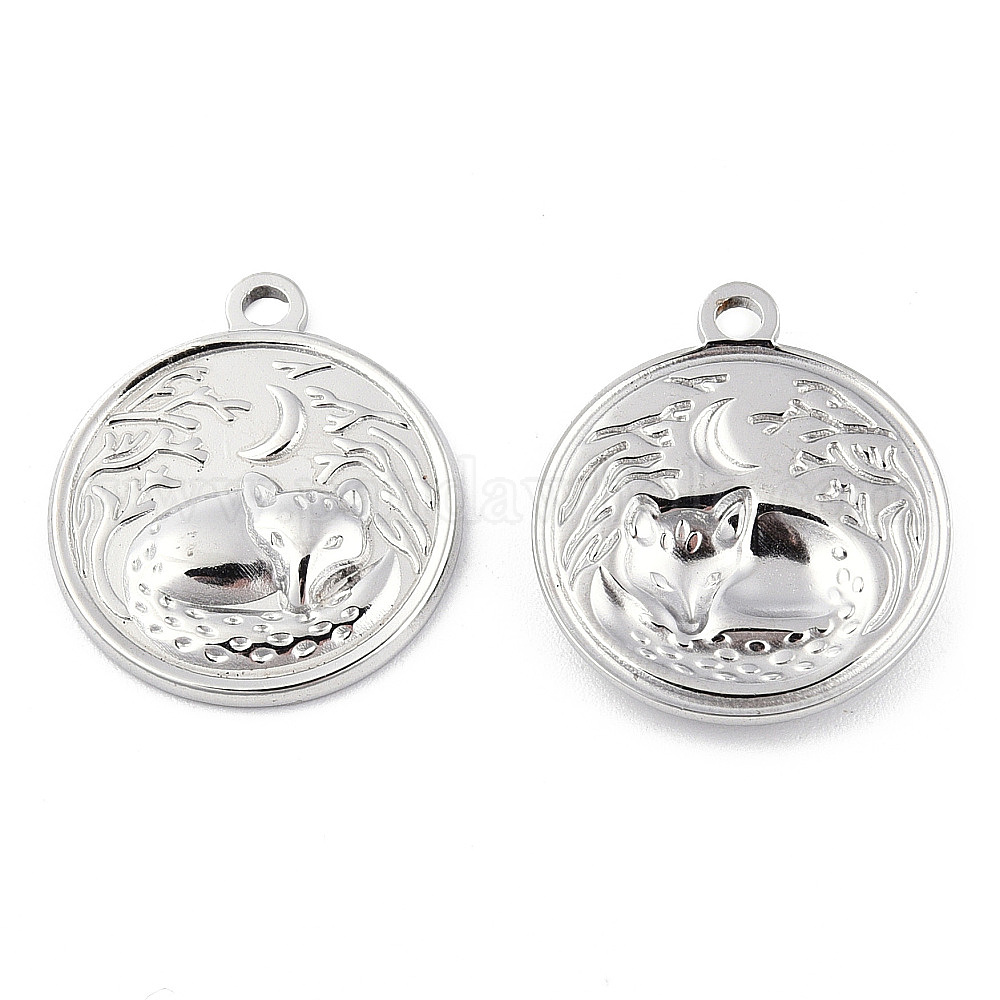 201 Подвески из нержавеющей стали с ионным покрытием (IP), плоская круглая с подвеской в виде лисы
