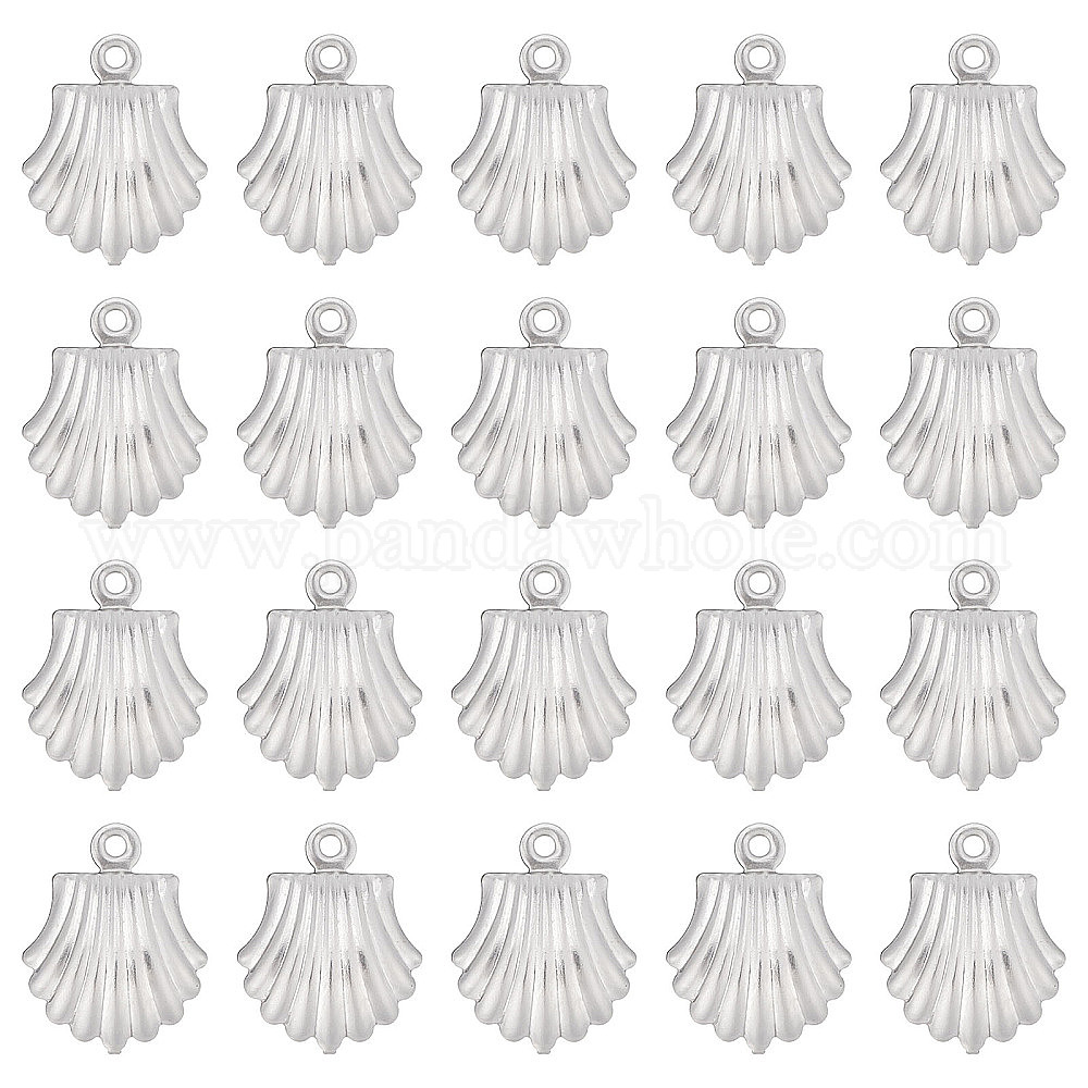 • Нержавеющая Сталь Цвет 100шт 316 подвески из хирургической нержавеющей стали, формы раковины, цвет нержавеющей стали, 14x11x4 мм, отверстие : 1.2 мм