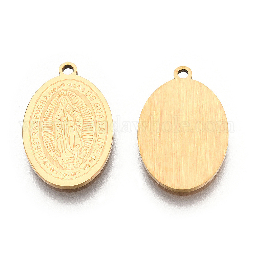 • Настоящее золото 18K 201 подвески из нержавеющей стали, овальный брелок с Девой Марией, реальный 18 k позолоченный, 19.5x12.5x1 мм, отверстие : 1.4 мм