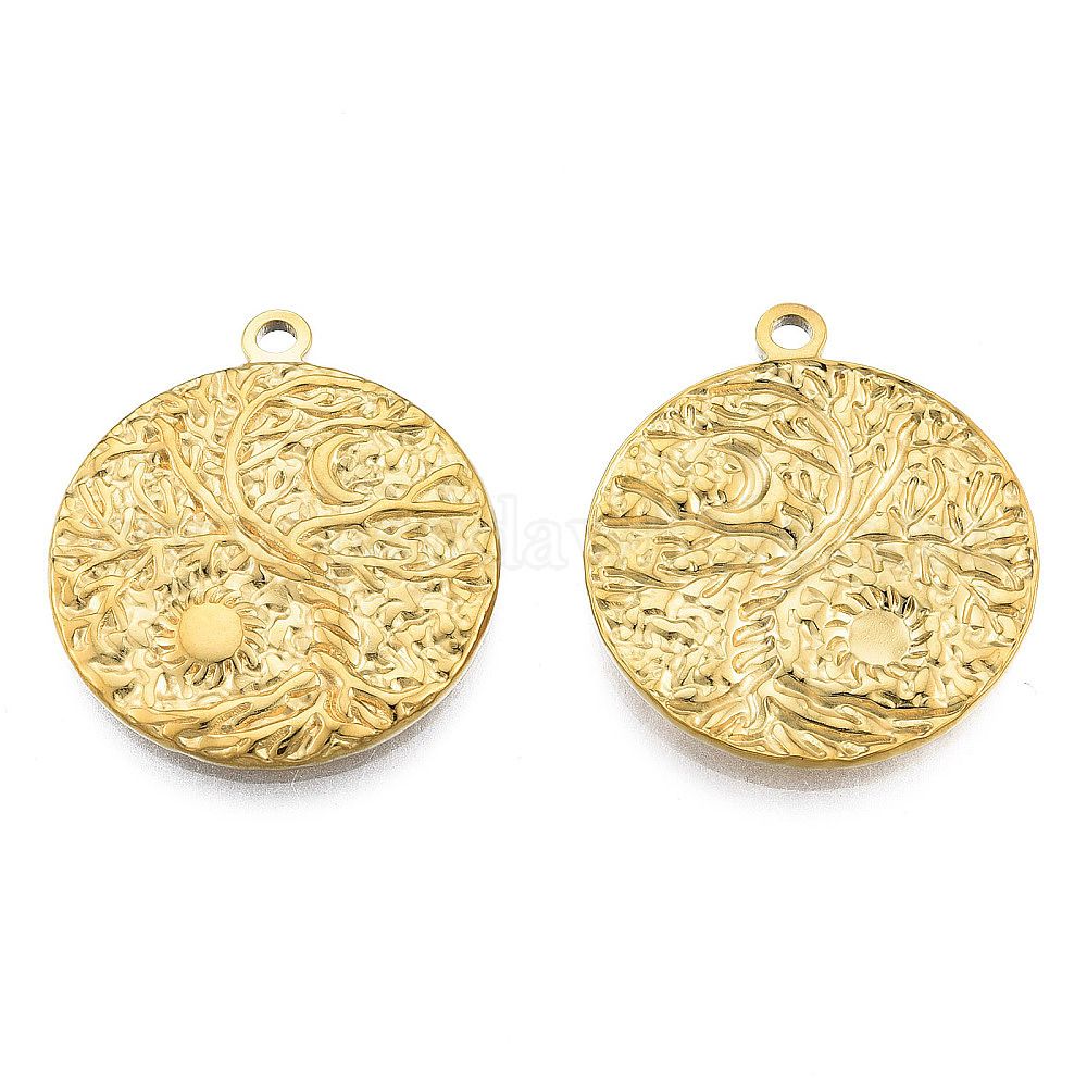 201 подвески из нержавеющей стали, плоские круглые с солнцем и луной