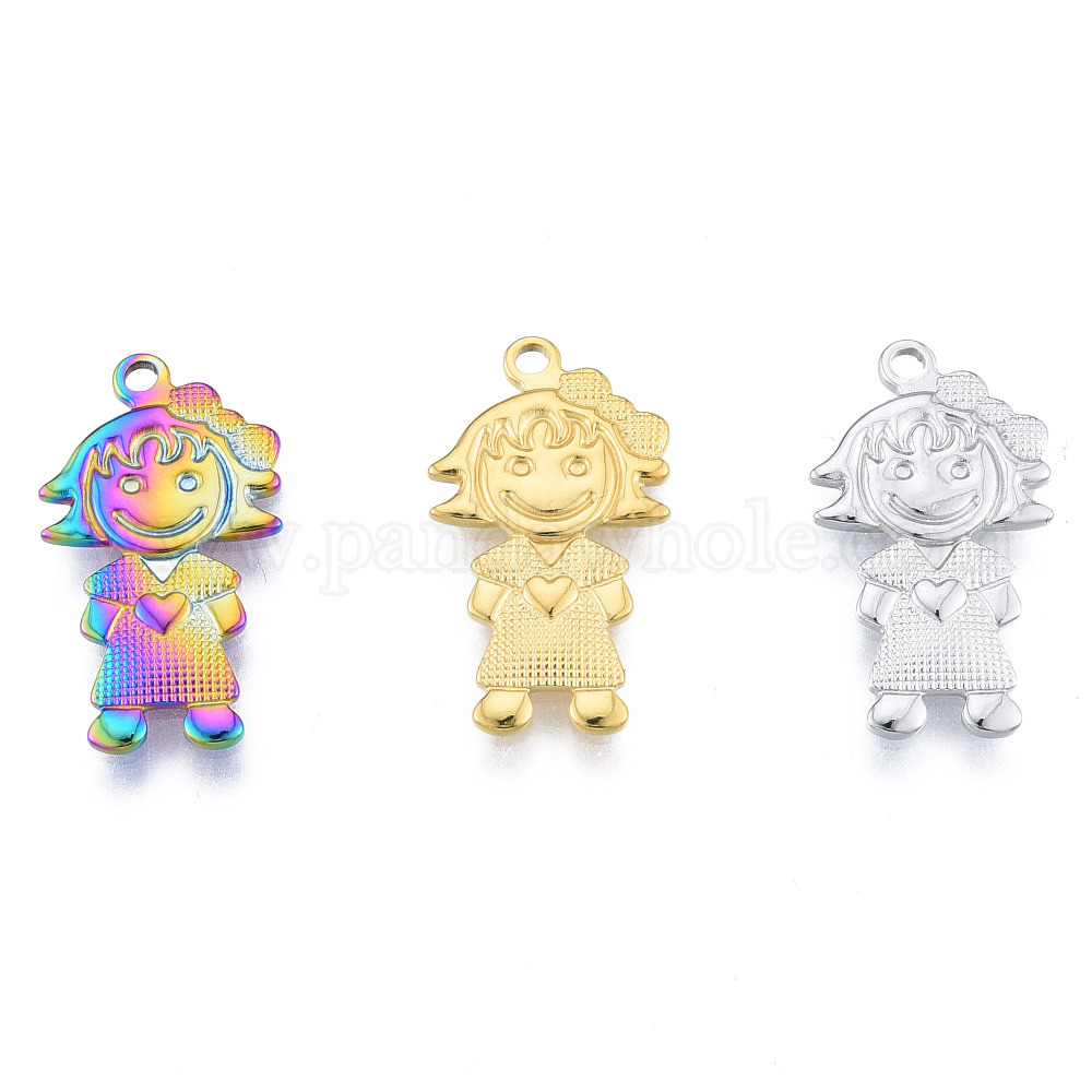 • Rainbow Color Ионное покрытие (ip) 304 подвески из нержавеющей стали, девушка, Радуга цветов, 22x12x1.5 мм, отверстие : 1.6 мм