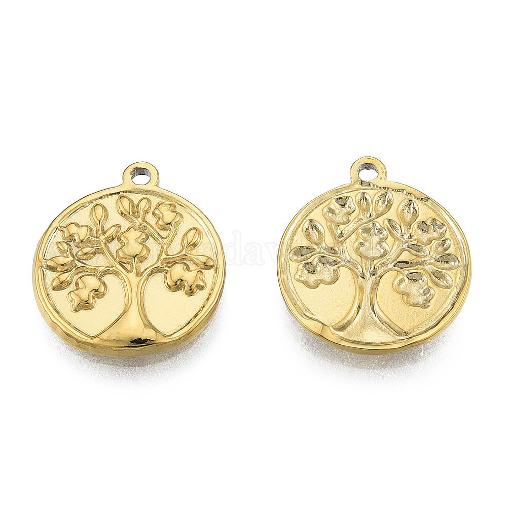 • Настоящее золото 18K Ионное покрытие (ip) 304 подвески из нержавеющей стали, плоские круглые с дерева жизни, реальный 18 k позолоченный, 18x15.5x2 мм, отверстие : 1.5 мм