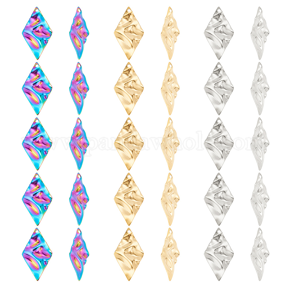 30шт. 3 цвета 304 подвеска из нержавеющей стали, фактурные подвески, ромб