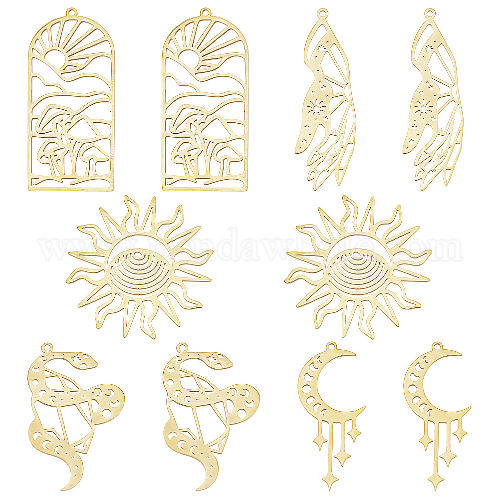10 шт 5 стиль 201 подвески из нержавеющей стали, наброски прелести, рука со звездой и солнцем, змея с луной, арка с солнцем и грибами