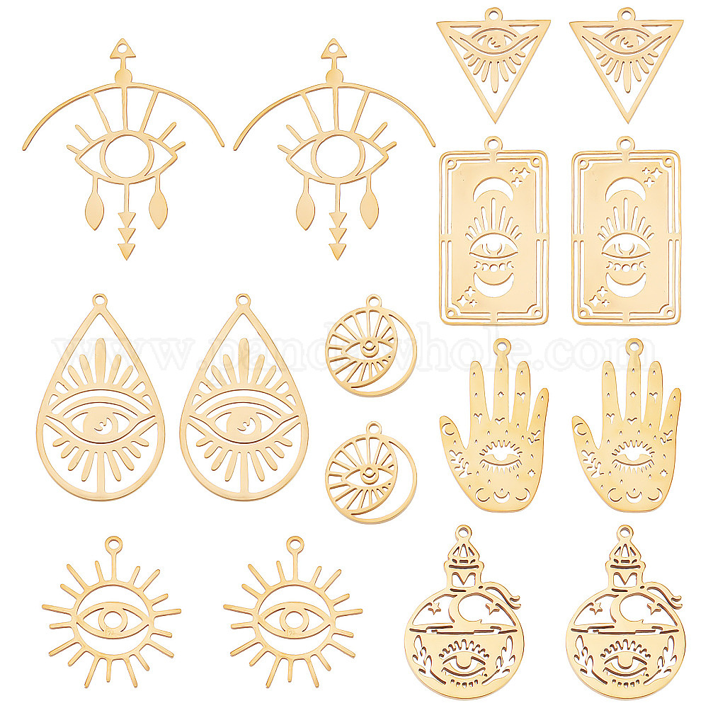 16шт 8 стиль 201 и 304 подвески из нержавеющей стали, плоский круглый с глазом и луной и треугольник с глазом (02EZFE)