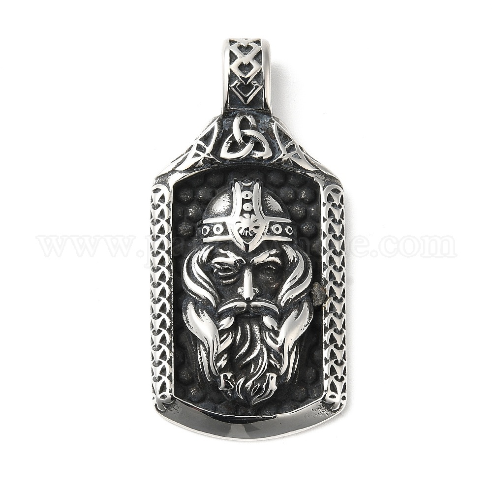 • Античное Серебро 304 подвески для ручной полировки из нержавеющей стали, скандинавский Один талисман викингов человек с тройным рогом, античное серебро, 47.5x23x5.5 мм, отверстие : 5x7 мм