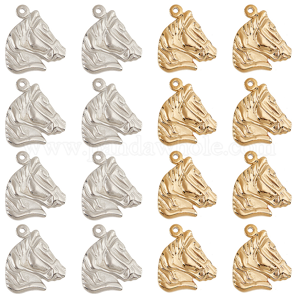 • Золотой & Цвет Нержавеющей Стали 16 шт. 2 цвета 304 подвески из нержавеющей стали, голова лошади, золотые и нержавеющая сталь цвет, 21.5x19x2 мм, отверстие : 1.5~2 мм, 8 шт / цвет