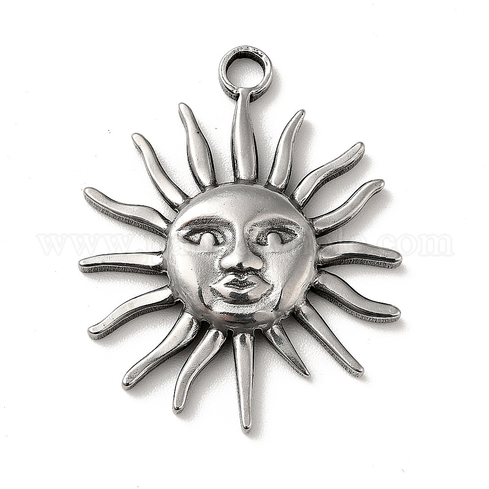 • Античное Серебро 304 подвески из нержавеющей стали, солнце с чарами человеческого лица, античное серебро, 30x25x3.5 мм, отверстие : 3 мм