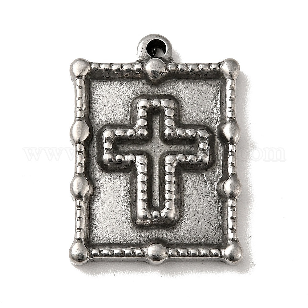 • Античное Серебро 304 подвески из нержавеющей стали, прямоугольник с подвесками в виде креста, античное серебро, 21x15x3 мм, отверстие : 1.2 мм
