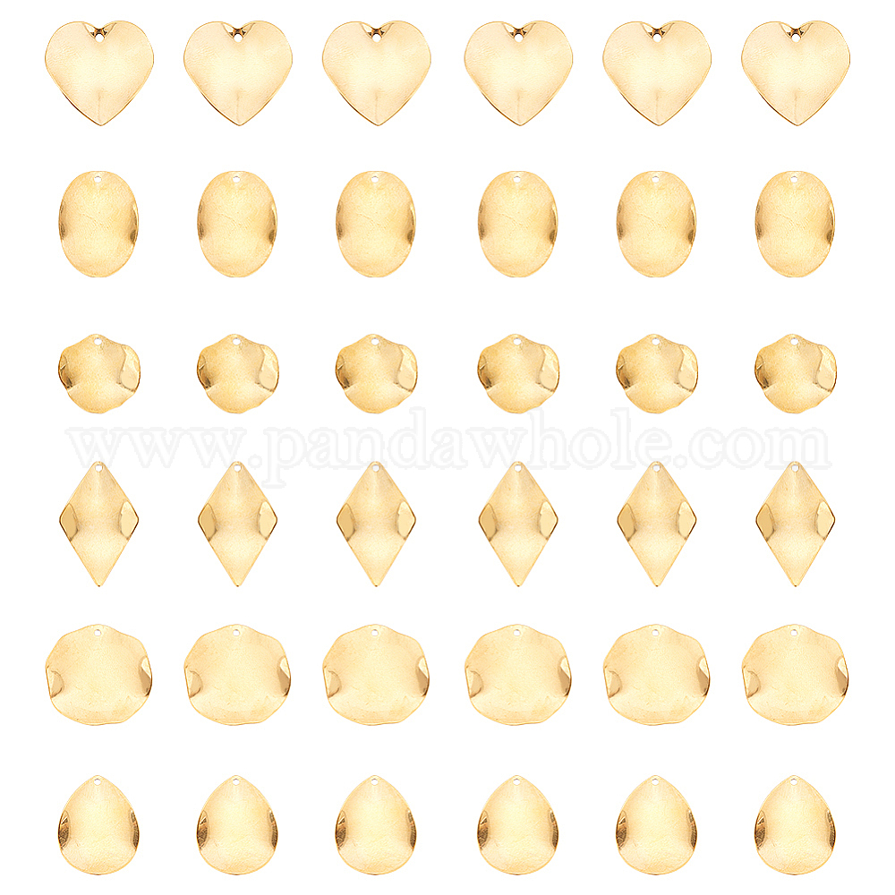 • Золотой 36 шт 6 стиль 304 подвески из нержавеющей стали, золотые, лист и сердце и слеза, золотые, 16~26x15.5~23.5x1~2 мм, отверстие : 1.2 мм, 6 шт / стиль