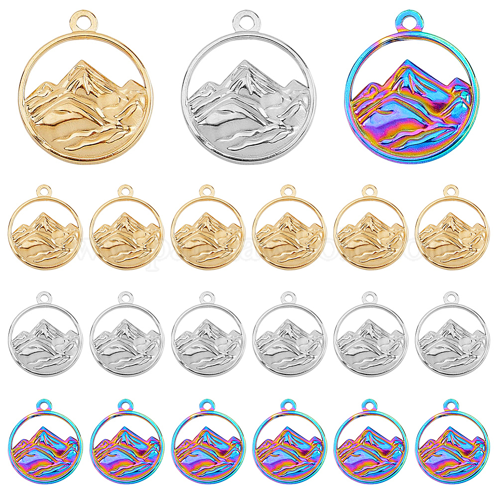 18 шт. 3 цвета 304 подвески из нержавеющей стали с ионным покрытием (IP), плоский круглый с горным очарованием