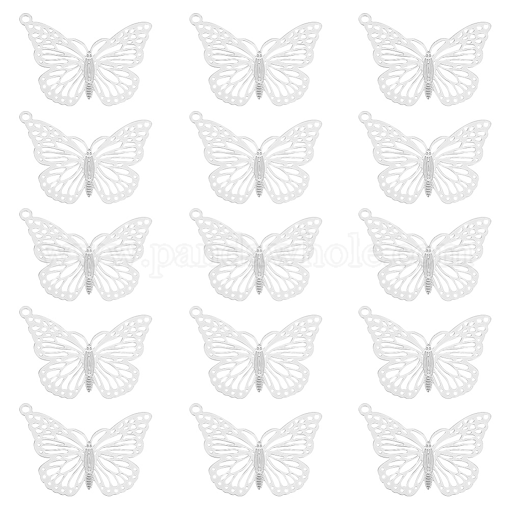 • Нержавеющая Сталь Цвет 60 шт. 304 подвески из нержавеющей стали, гравированные металлические украшения, бабочка, цвет нержавеющей стали, 19x26x0.4 мм, отверстие : 1.2 мм