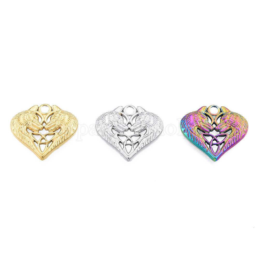 • Нержавеющая Сталь Цвет Не тускнеющие 201 подвески из нержавеющей стали, сердце с волком и тройным узлом, цвет нержавеющей стали, 19x20.5x2.5 мм, отверстие : 2.5 мм