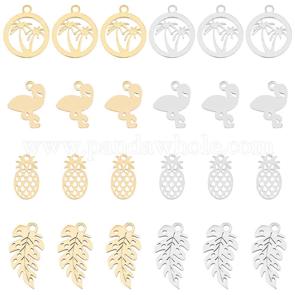 32 шт 8 стиль 304 подвески из нержавеющей стали, ручная полировка, ананас и фламинго и кольцо с кокосовой пальмой