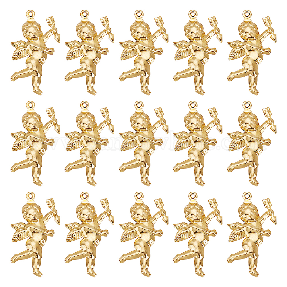 • Настоящее золото 18K День святого Валентина 304 подвески из нержавеющей стали, Амур, реальный 18 k позолоченный, 29x16x5 мм, отверстие : 1 мм, 20 шт / коробка