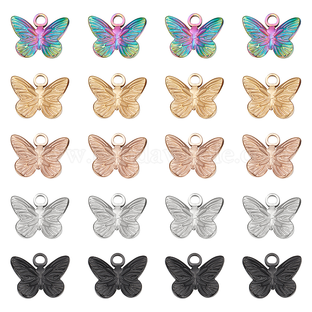 20 шт 5 цвета 304 подвески из нержавеющей стали, бабочка (02FGAZ)