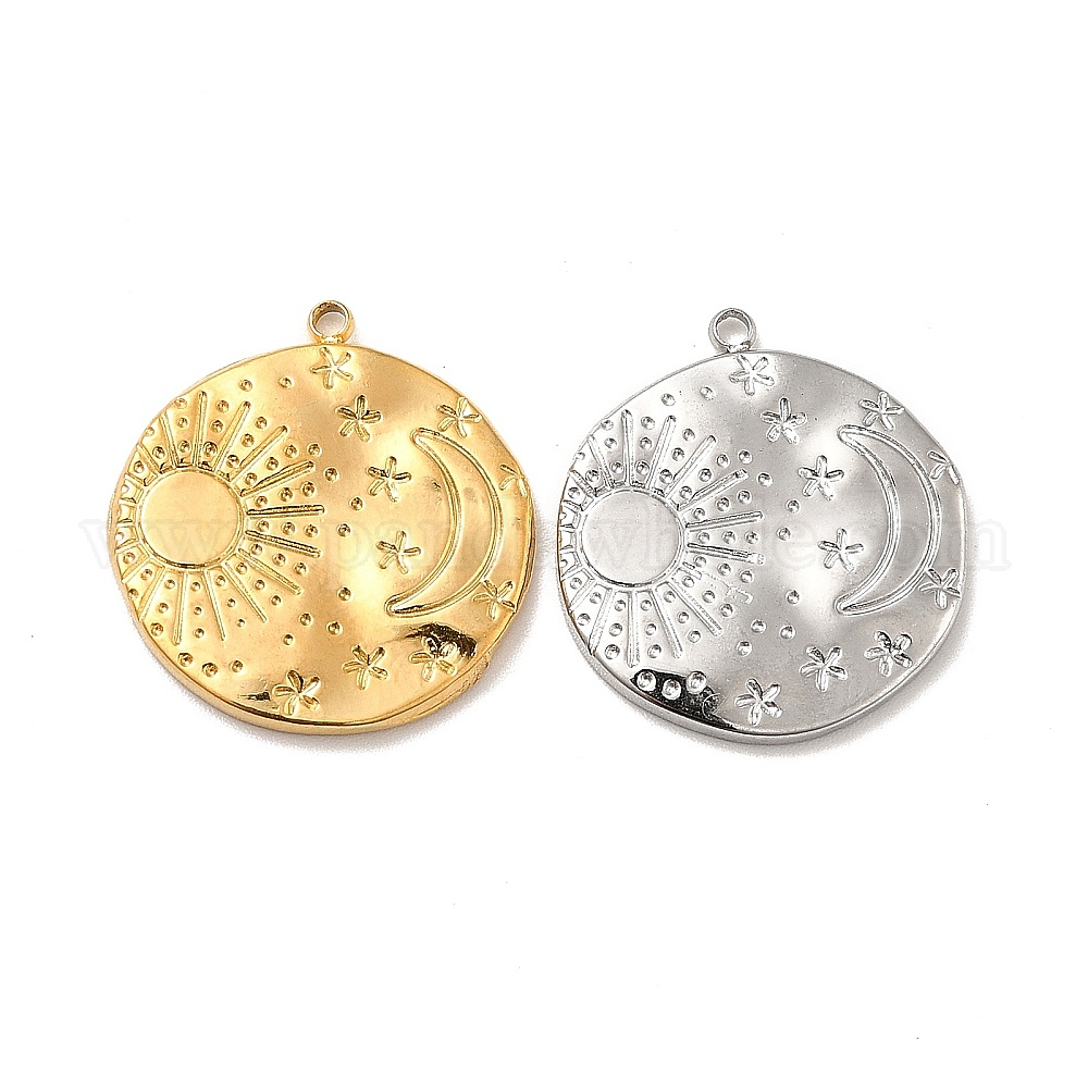304 подвески из нержавеющей стали, плоский круг с луной и солнцем (02FPRG)