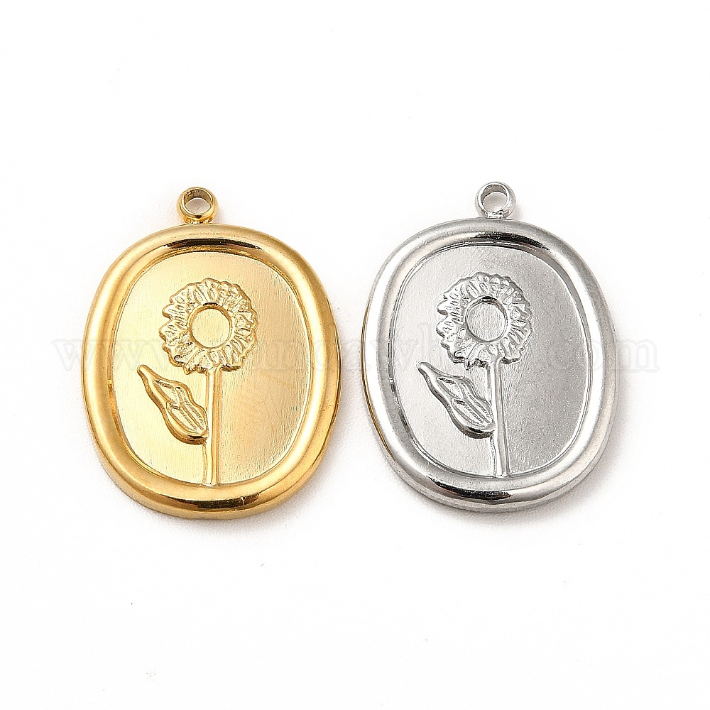 304 подвески из нержавеющей стали, овал с цветком (02FPXK)
