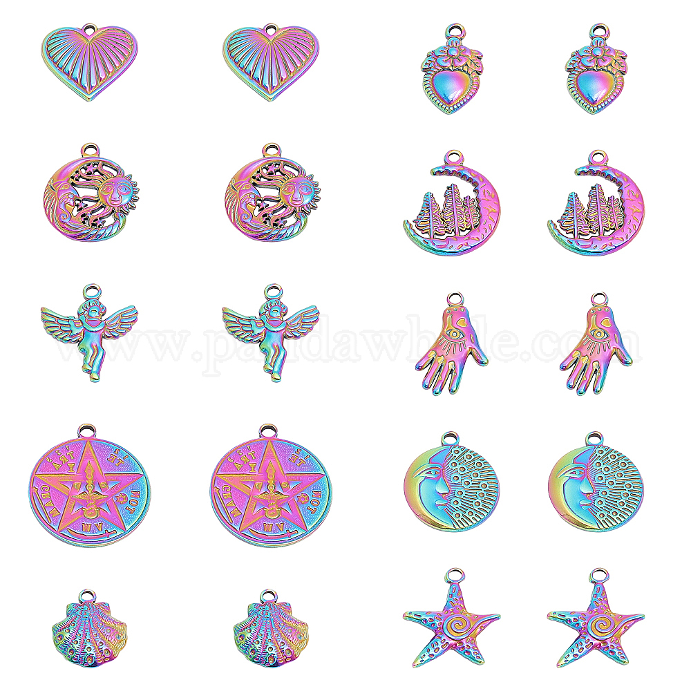 20 шт 10 стили 304 подвески из нержавеющей стали, ангел и морская звезда и ракушка