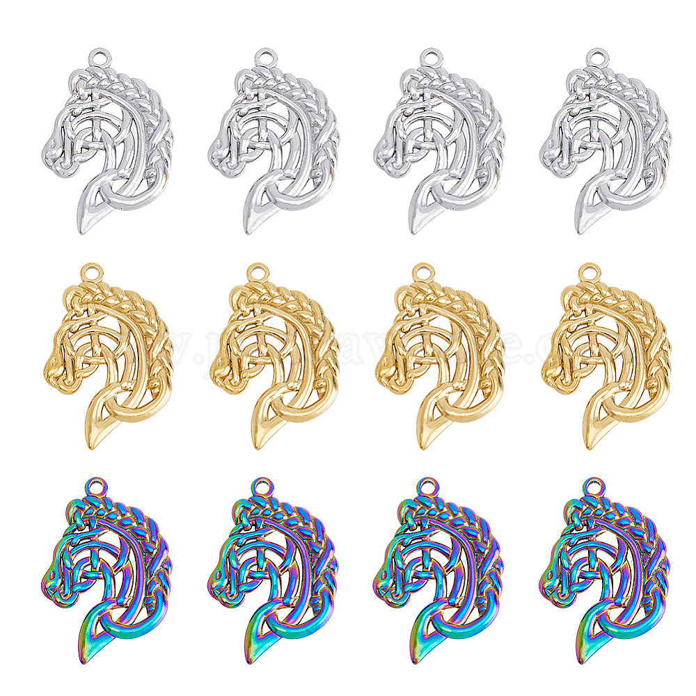 12 шт. 3 цвета 304 подвески из нержавеющей стали, лошадь