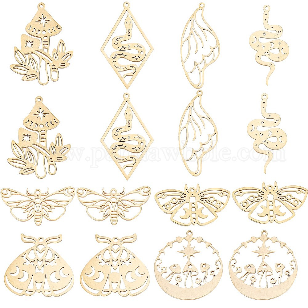 16 шт 8 стиль 201 подвески из нержавеющей стали, лазерная резка, гриб и жук и бабочка