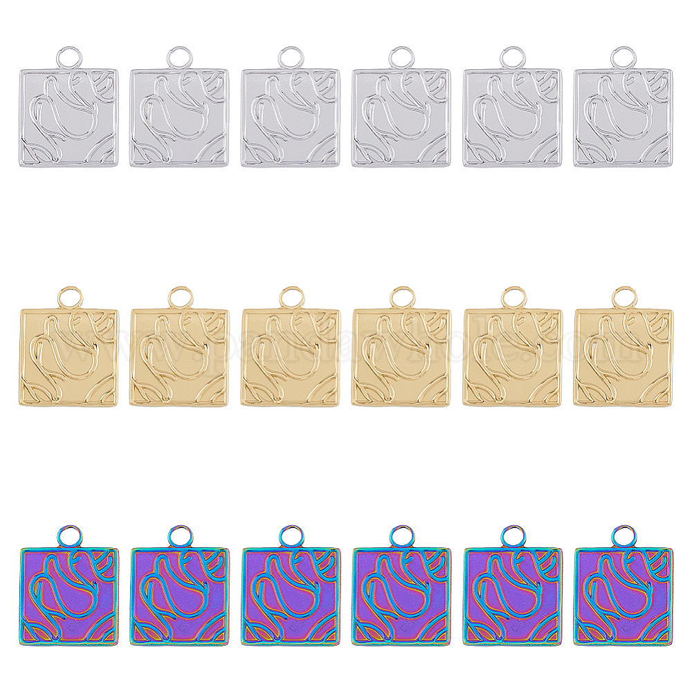 18 шт. 3 цвета 201 подвески из нержавеющей стали с ионным покрытием (IP), квадратный