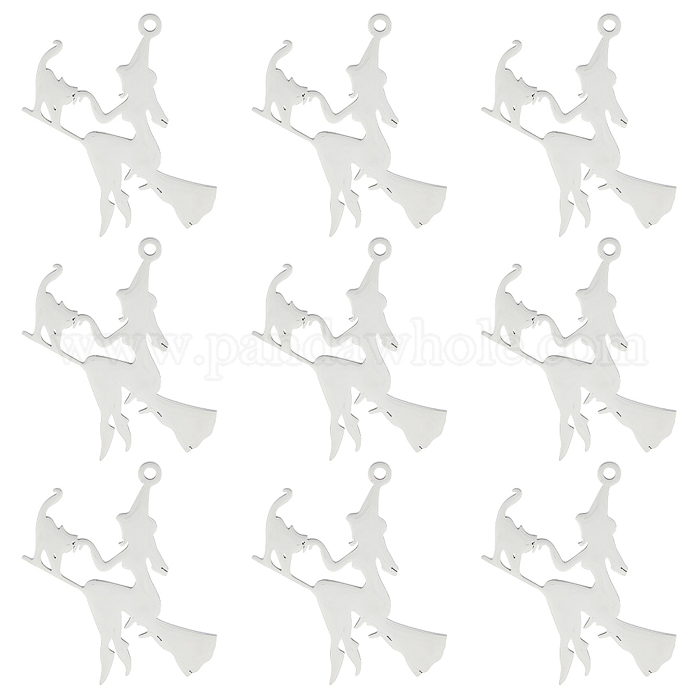 • Нержавеющая Сталь Цвет 10 шт. Хэллоуин 201 подвески из нержавеющей стали, лазерная резка, ведьма с кошкой, цвет нержавеющей стали, 39.5x35x1 мм, отверстие : 2 мм