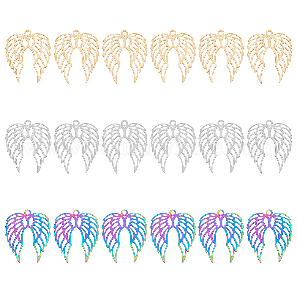 18 шт. 3 цвета 201 подвески из нержавеющей стали, гравированные металлические украшения, крыло