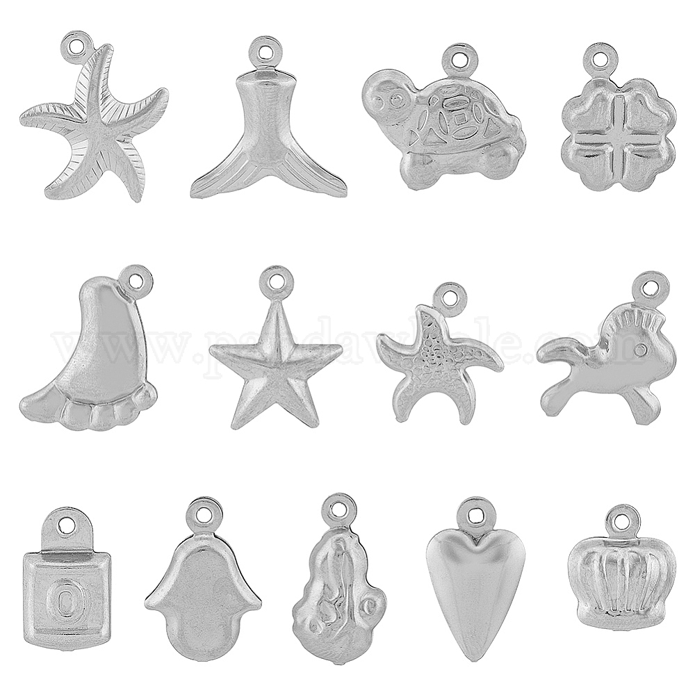 • Нержавеющая Сталь Цвет 130 шт. 13 стили 304 подвески из нержавеющей стали в виде сердца, лошади и арахиса, цвет нержавеющей стали, 11.5~18.1x7~3.3~5.2 мм, отверстие : 0.8~1.4 мм, 10 шт / стиль