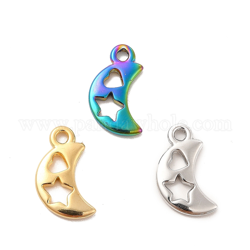 Ионное покрытие (ip) 304 подвески из нержавеющей стали, полый, луна с сердцем и звездой