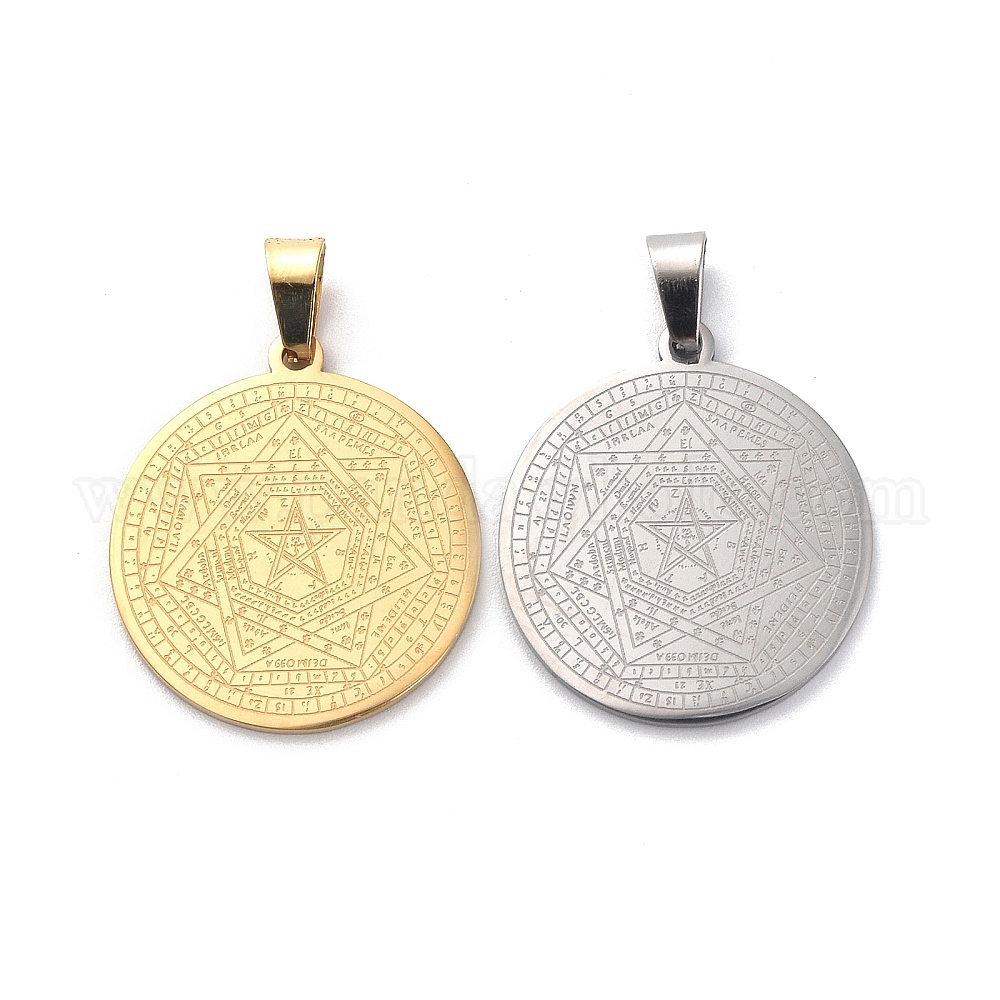 • Золотой 201 подвески из нержавеющей стали, плоско-круглые, золотые, 28x25x1 мм, отверстие : 7.5x4 мм