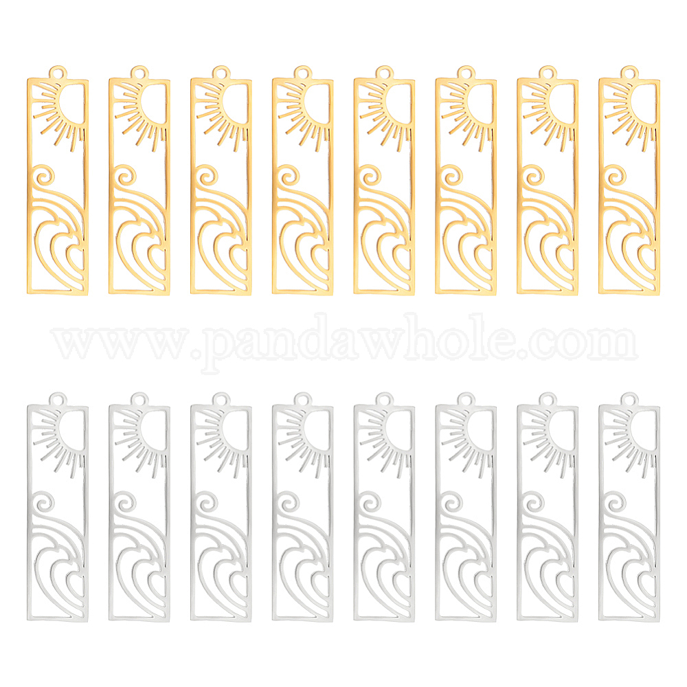 8 шт. 2 цвета 201 подвески из нержавеющей стали, лазерная резка, прямоугольник с солнцем