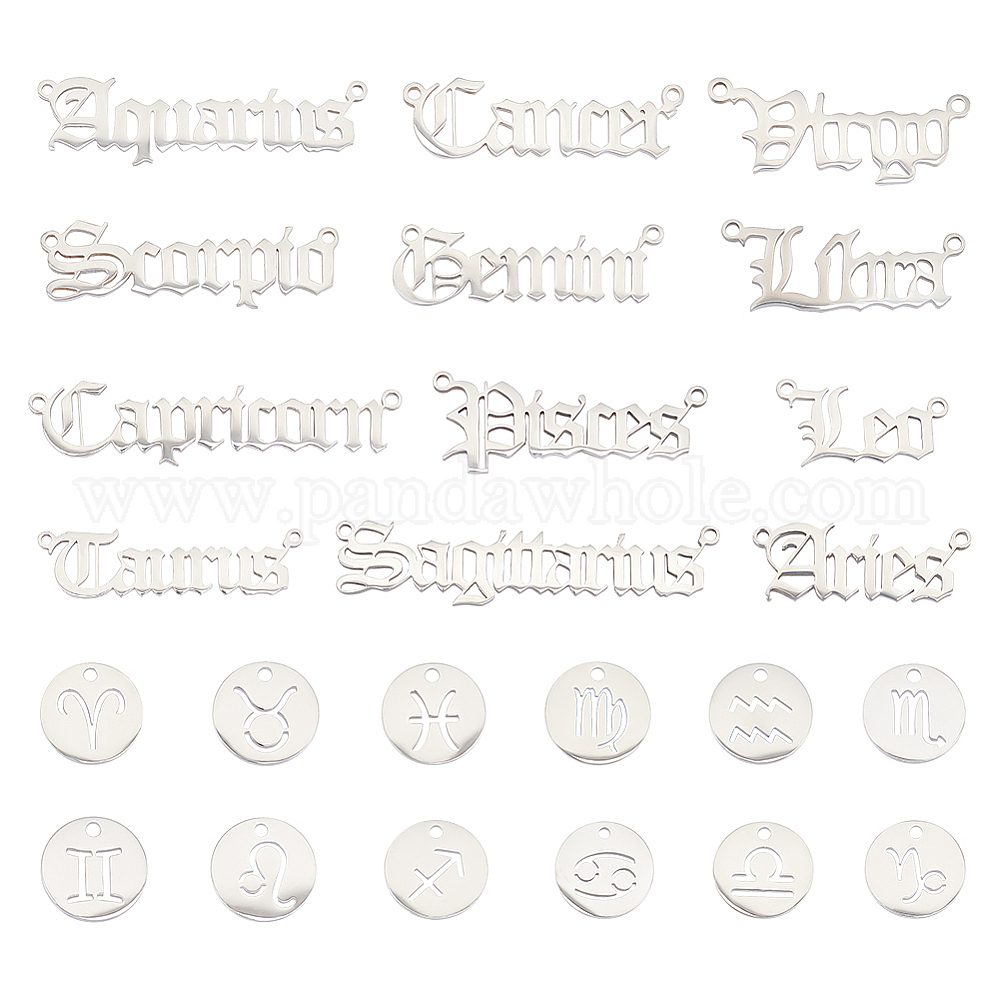 • Нержавеющая Сталь Цвет 24 шт. 24 стиль 304 нержавеющая сталь и подвески из нержавеющей стали, 12 очарование созвездия, цвет нержавеющей стали, 8.5~12.5x12~46x1 мм, отверстие : 1.2~1.6 мм, 1 шт / стиль