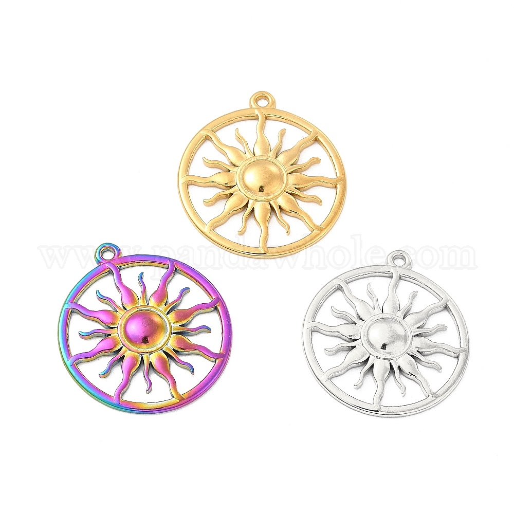 Ионное покрытие (ip) 304 подвески из нержавеющей стали, кольцо с солнечным шармом