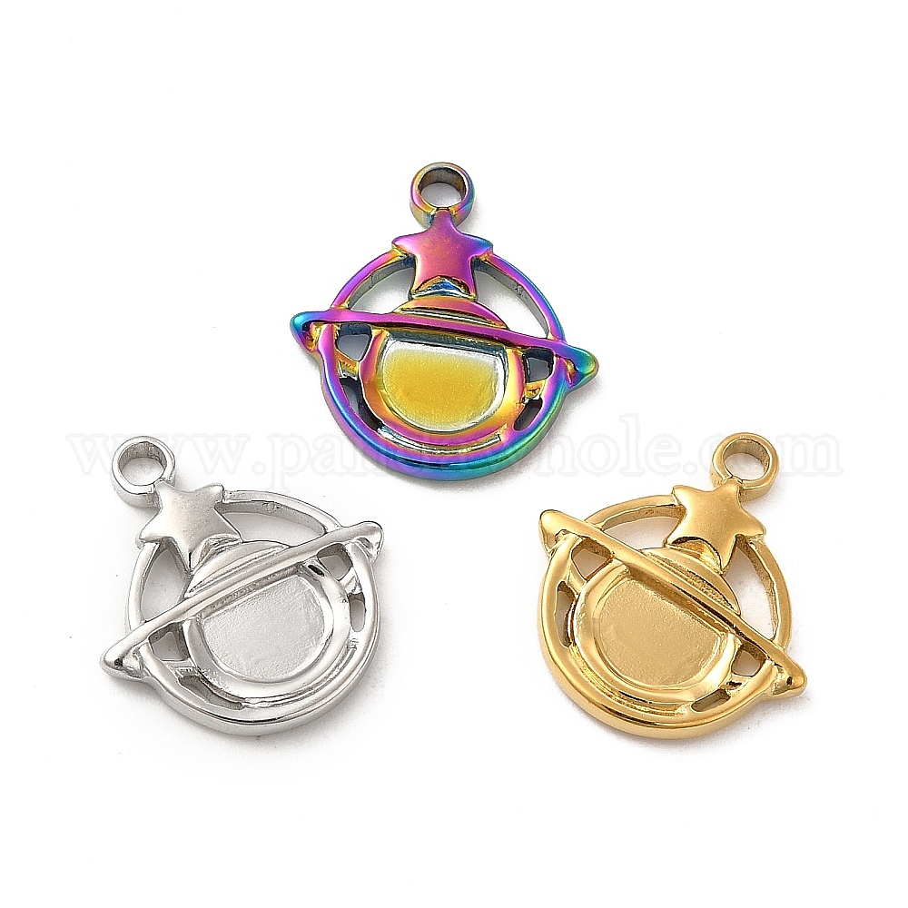• Нержавеющая Сталь Цвет Не тускнеющие 304 подвески из нержавеющей стали, планета со звездным шармом, цвет нержавеющей стали, 16x15x2 мм, отверстие : 1.8 мм