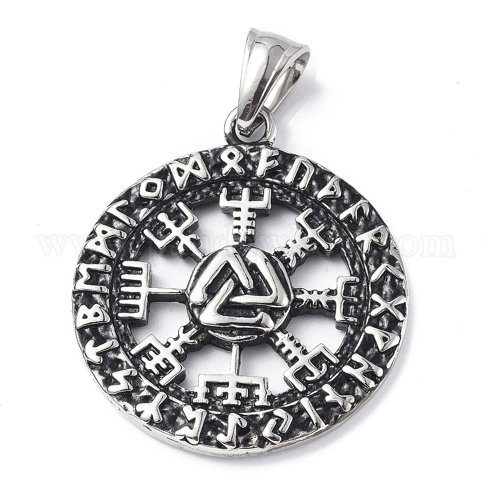 304 подвески из нержавеющей стали, плоский круг с руной компаса викингов
