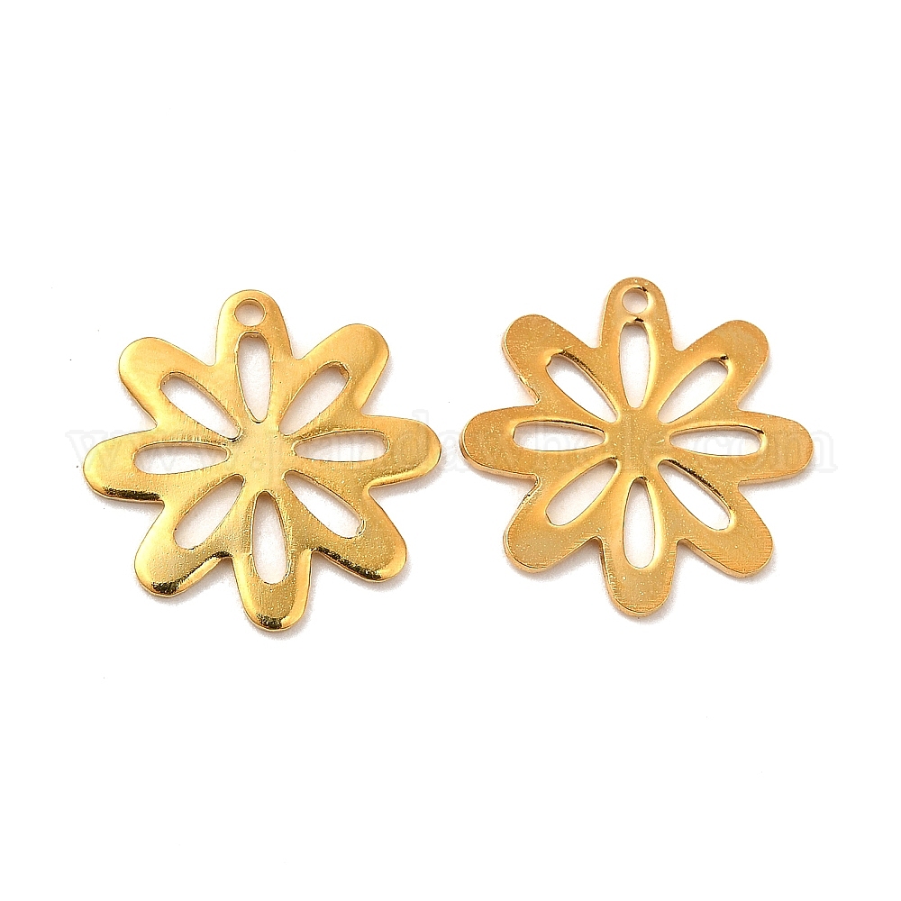 • Настоящее золото 24K 201 подвески из нержавеющей стали, цветочный шарм, реальный 24 k позолоченный, 16x0.5 мм, отверстие : 1.2 мм