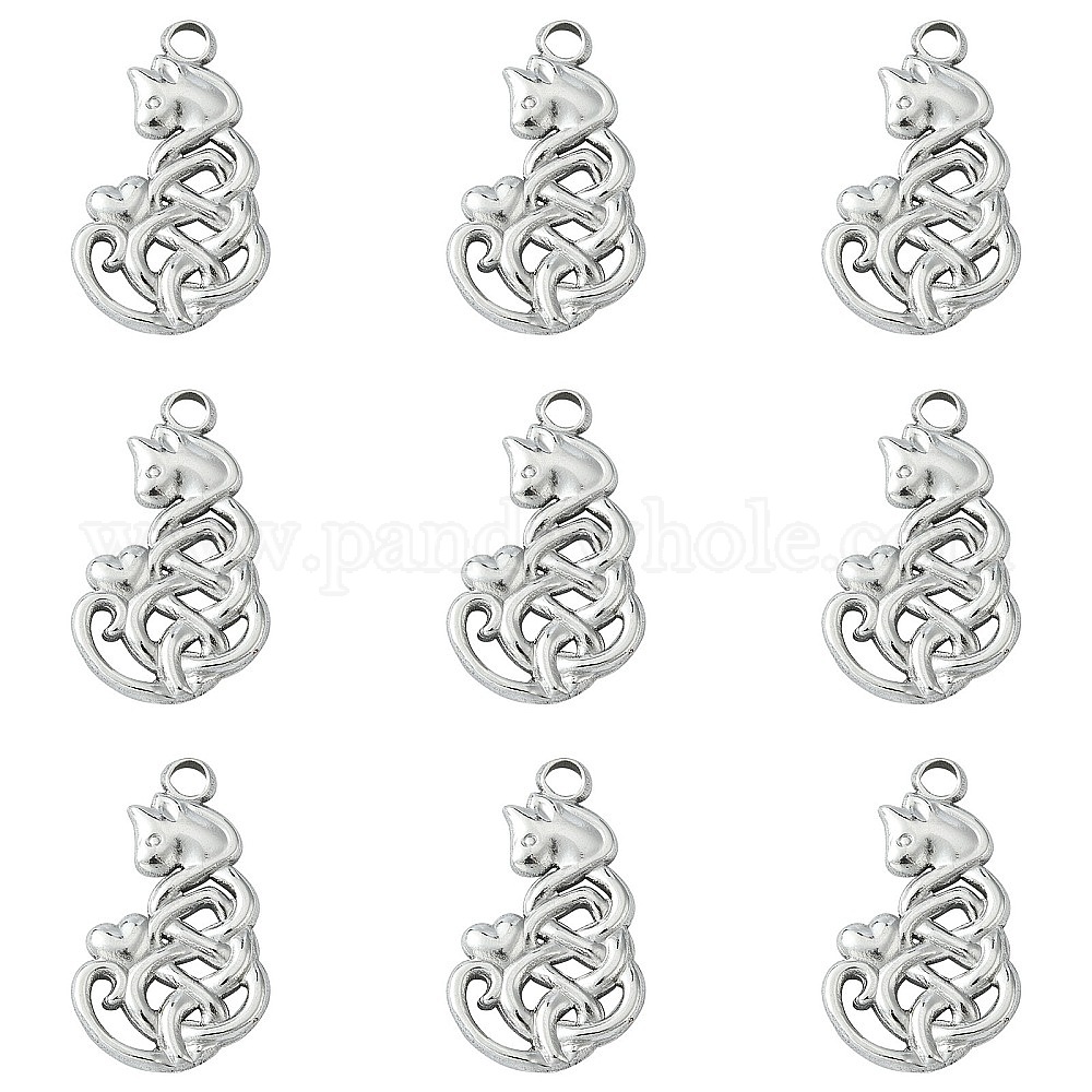 10 шт. 201 подвески из нержавеющей стали, кот с сердечным шармом