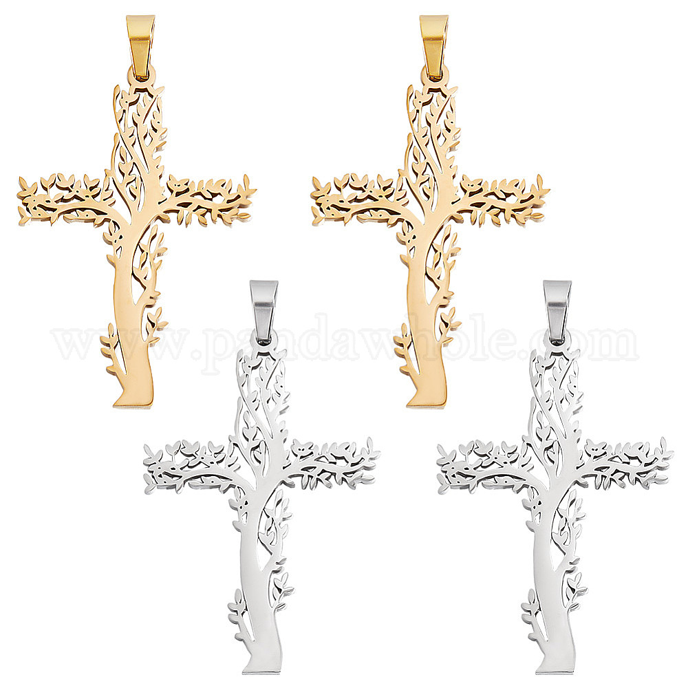 4 шт. 2 цвета 304 подвески из нержавеющей стали, крест с деревом (02H5D2)