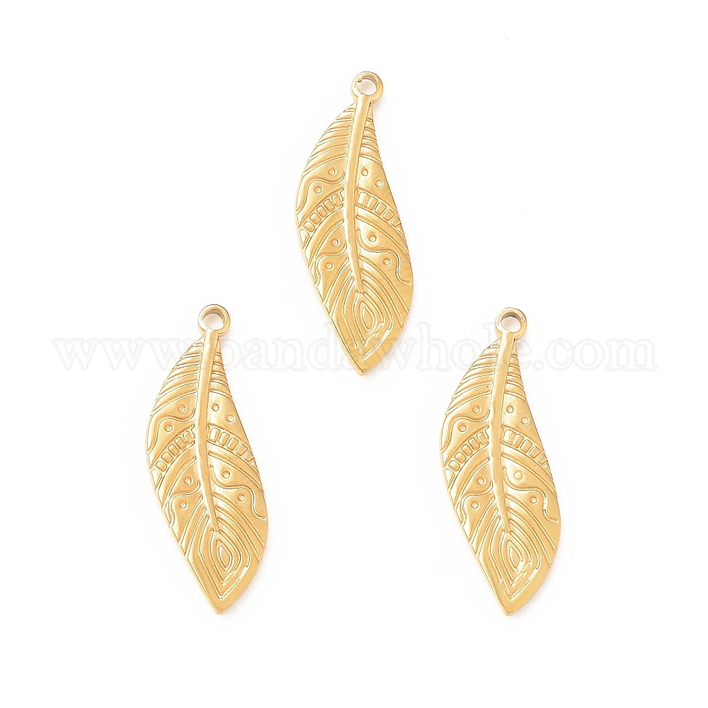 • Настоящее золото 18K 304 подвески из нержавеющей стали, лист, реальный 18 k позолоченный, 23x9x1.2 мм, отверстие : 1.4 мм