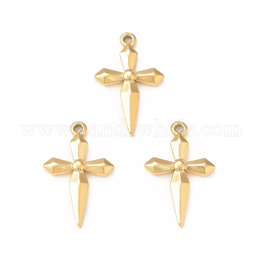 • Настоящее золото 18K 304 подвески из нержавеющей стали, крестик, реальный 18 k позолоченный, 18.5x11.5x2 мм, отверстие : 1 мм