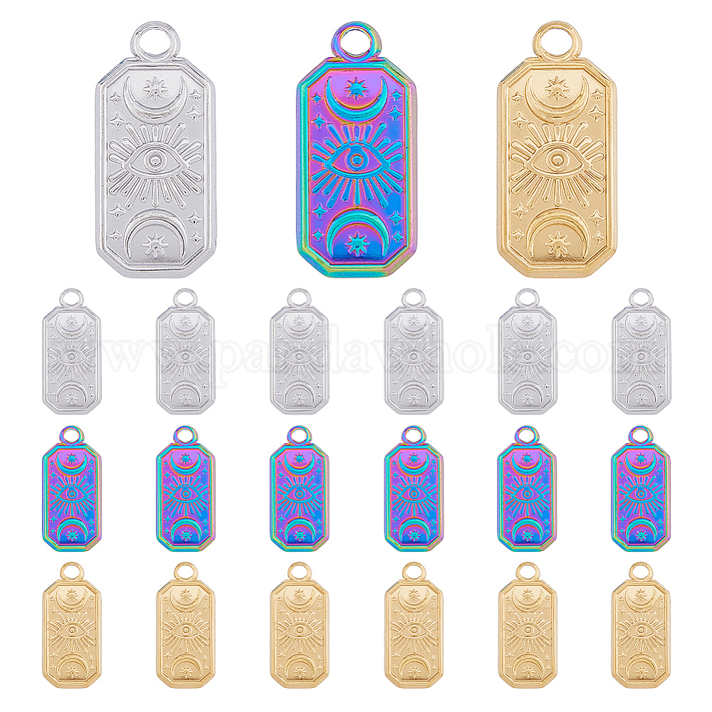 18 шт. 3 цвета 304 подвески из нержавеющей стали, прямоугольник с луной и глазом