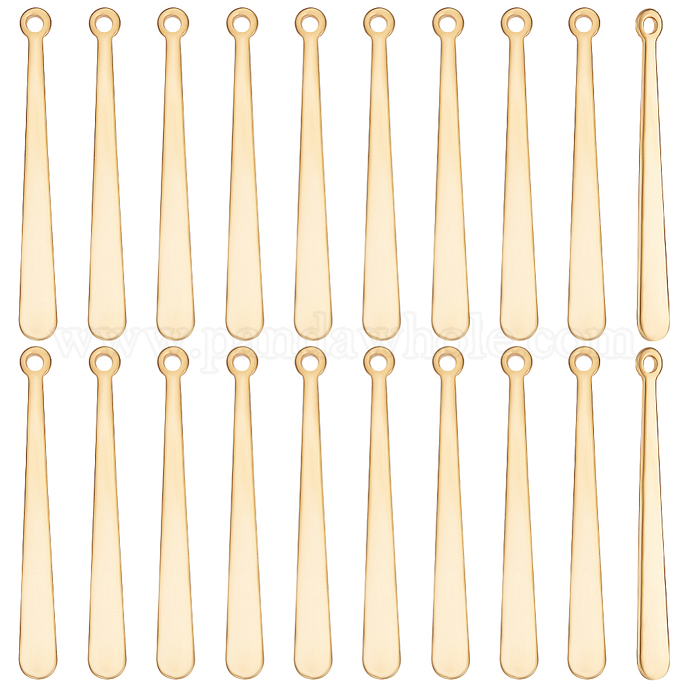 • Настоящее золото 18K 40 шт. 201 подвески из нержавеющей стали, бар, реальный 18 k позолоченный, 31.5x3.5x0.5 мм, отверстие : 1.4 мм