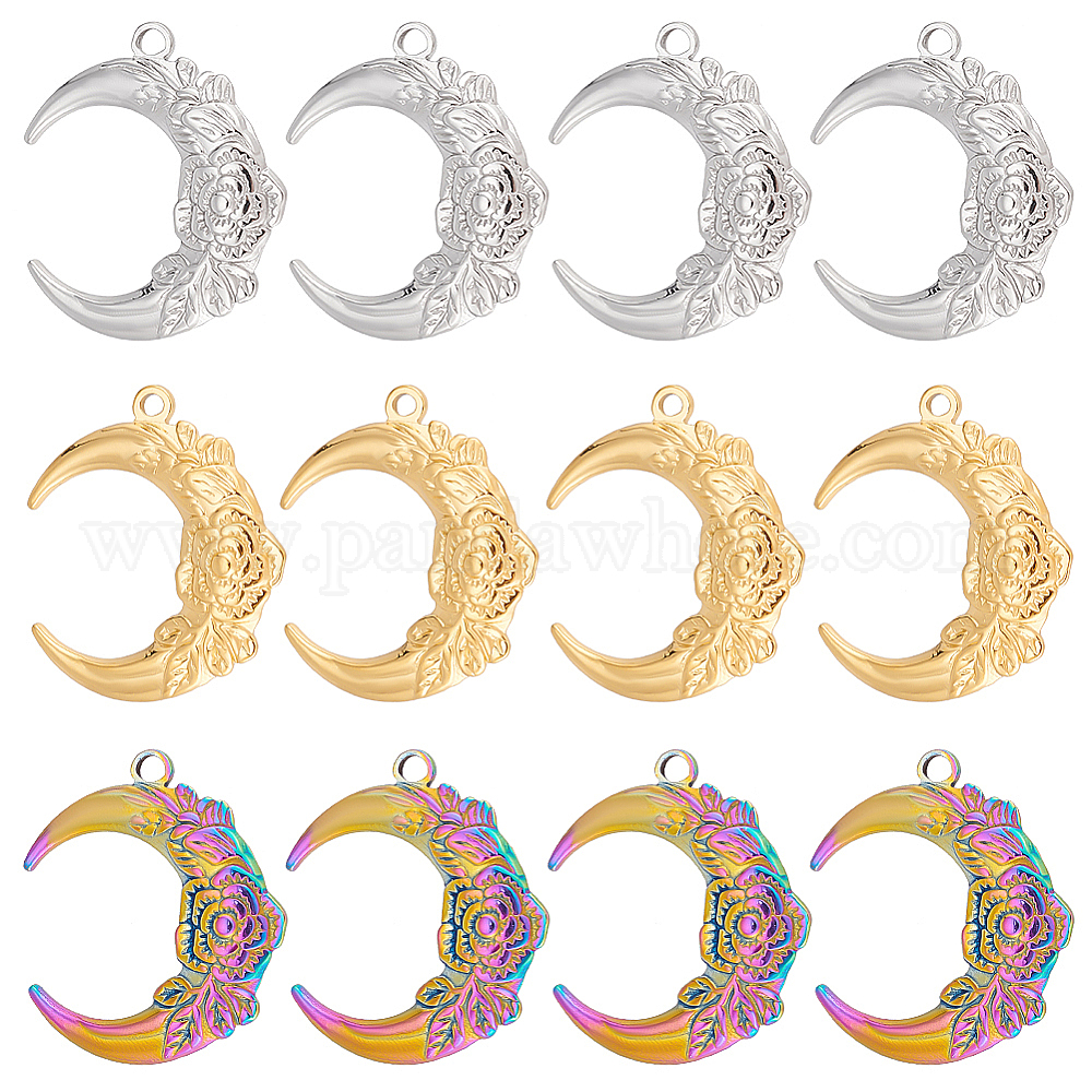 12 шт. 3 цветное ионное покрытие (ip) 201 подвески из нержавеющей стали, луна с цветком