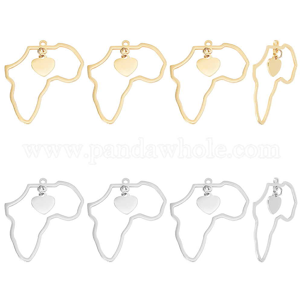 8 шт. 2 цвета 201 подвески из нержавеющей стали, карта с сердцем