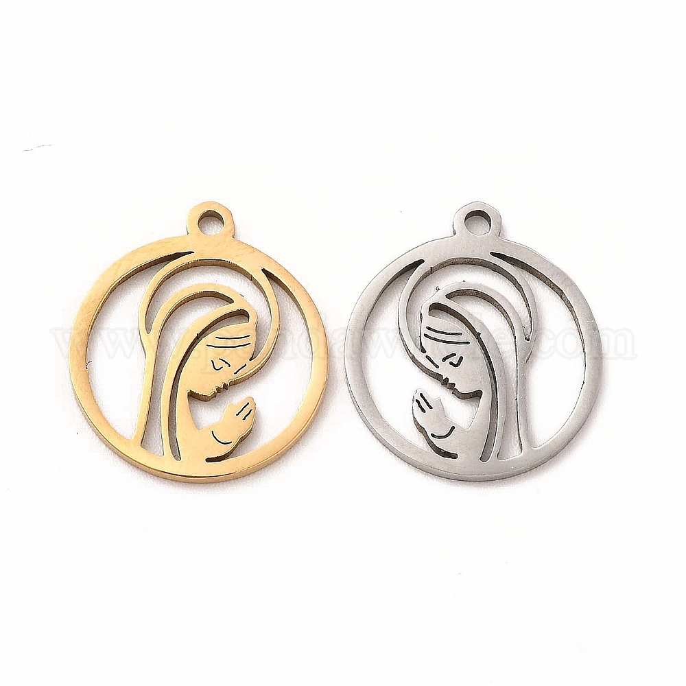 201 подвески из нержавеющей стали, плоский круглый с подвесками Девы Марии