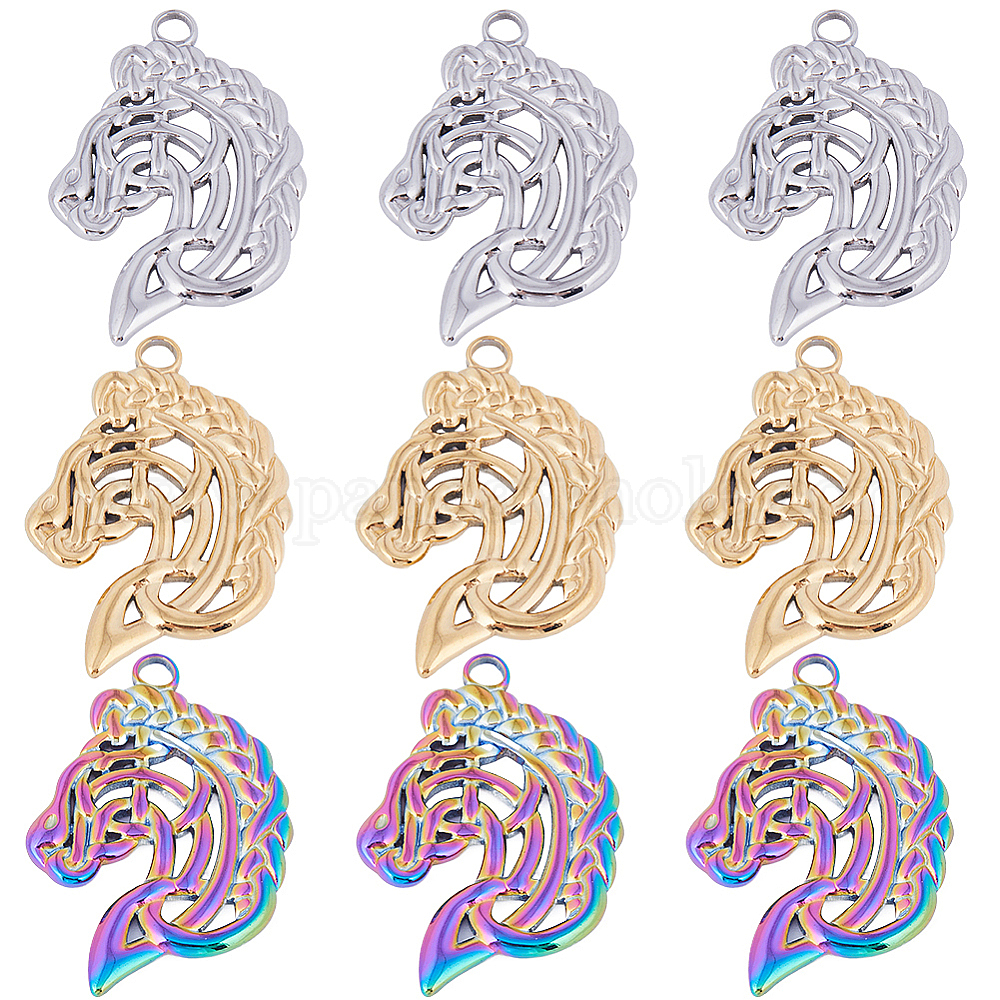 12 шт. 3 цвета 201 подвески из нержавеющей стали, прелести голова лошади