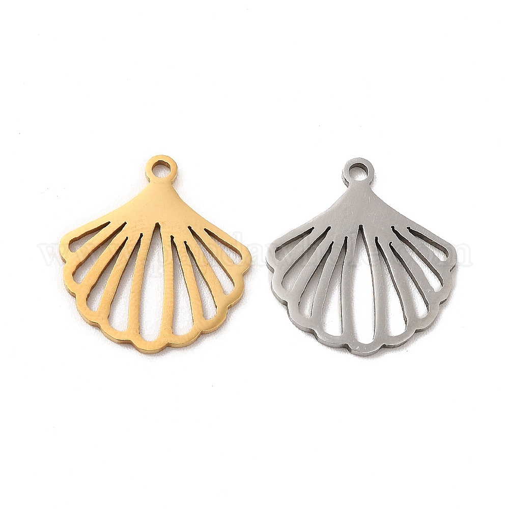 • Нержавеющая Сталь Цвет Не тускнеющие 201 подвески из нержавеющей стали, шарм в форме ракушки, цвет нержавеющей стали, 17x15.5x0.9 мм, отверстие : 1.4 мм