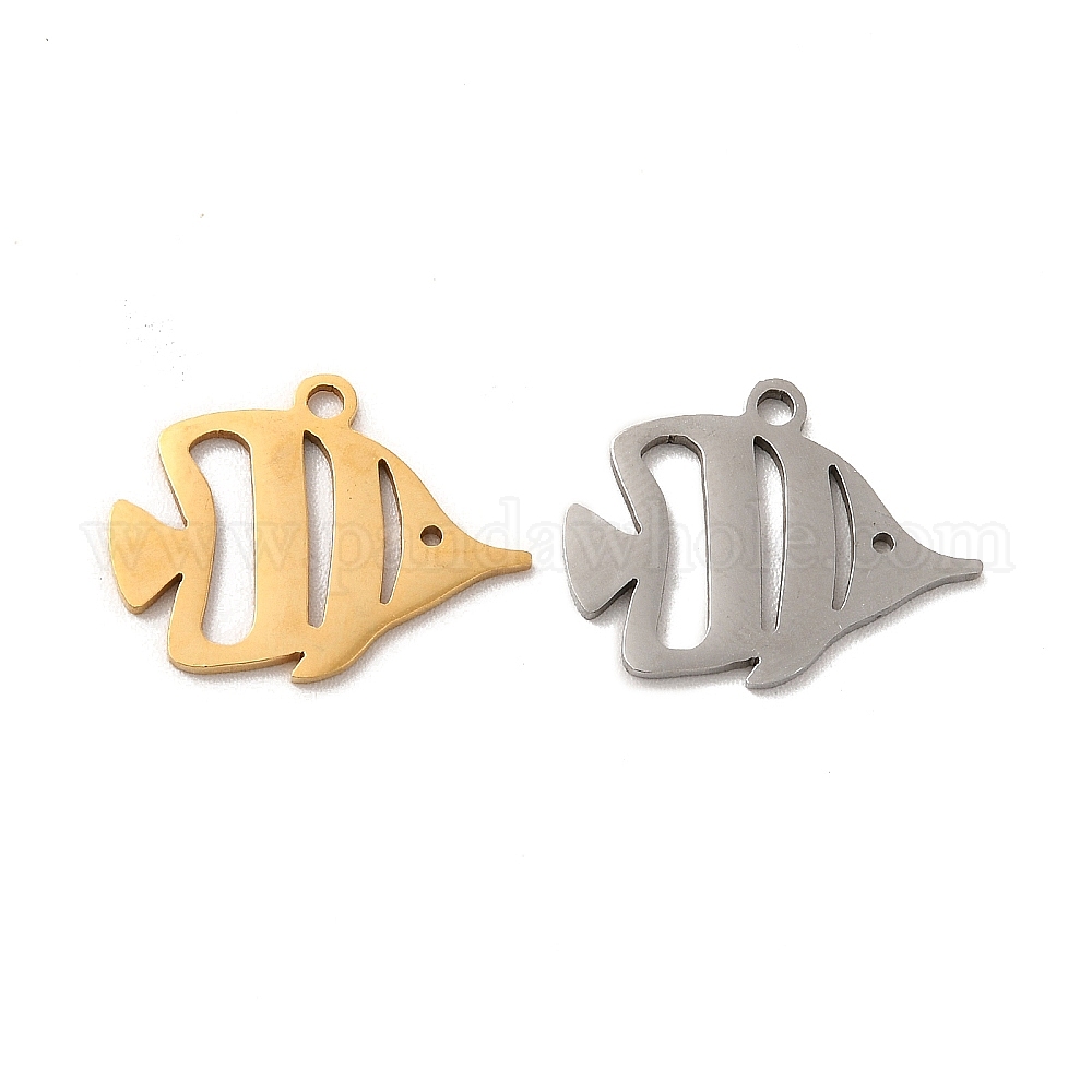 • Золотой 201 подвески из нержавеющей стали, амулеты из полой рыбы, золотые, 13.5x17.3x0.9 мм, отверстие : 1.4 мм